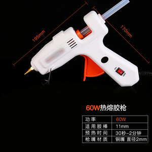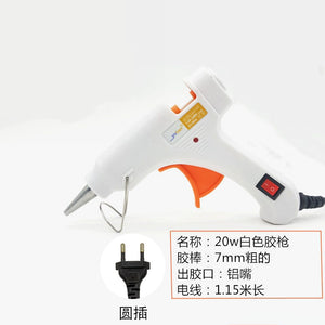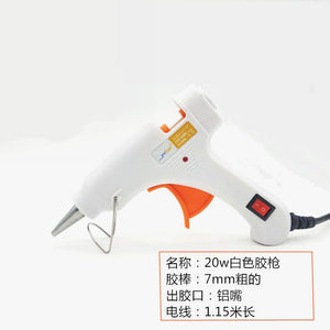 20w blue, 20w black, 20w white, 20w pink, 20w orange, 7*190mm glue sticks 1kg (≈128 pieces), 60w bigger glue gun, 100w bigger blue glue gun, 11*190mm glue sticks 1kg( ≈55 pieces) |