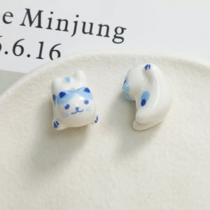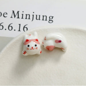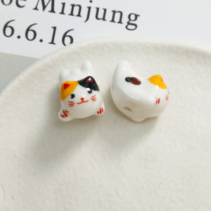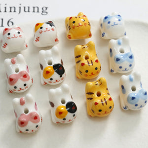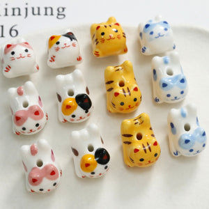 Cute ceramic cat straight hole beaded DIY