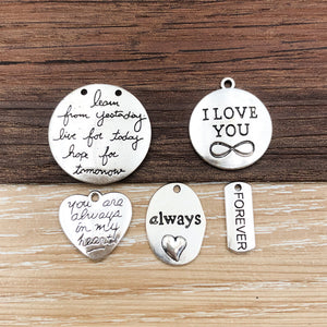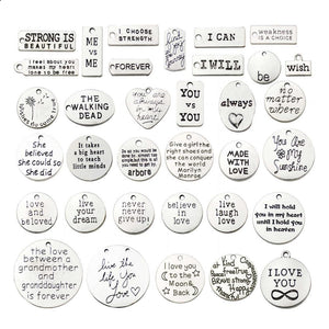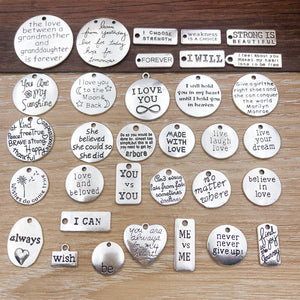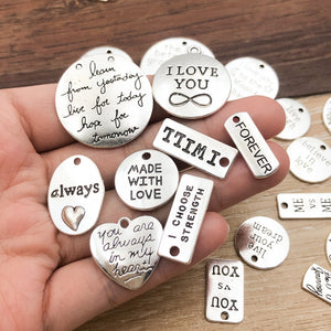 Mix 31 ancient silver letter cards - M44, 1 ancient silver round loveandbeloved letter card 20 * 20mm-2.7g-2490, 1 ancient silver round liveyourdream letter card 20 * 20mm-2.7g-2491, 1 ancient silver round nevernevergiveup letter card 20 * 20mm-2.5g-2492, 1 ancient silver round believeinlove letter card 20 * 20mm-2.6g-2493, 1 ancient silver round livelaughlove letter plate 19 * 19mm-2.7g-5028, 1 ancient silver peach heart youarealways letter card 20 * 21mm-2.8g-5728, 1 ancient silver rectangular wish letter card 13 * 10mm-0.8g-6990, 1 ancient silver oval always letter plate 18 * 26mm-2g-7018, 1 ancient silver rectangular ifeel letter card 8 * 30mm-2g-7754, 1 ancient silver livethelifeloveyou letter card 29 * 29mm-8.4g-7995, 1 ancient silver round giveagirl 25 * 25mm-4.4g-8317, 1 ancient silver round thelovebetween letter plate 32 * 32mm-8g-8319, 1 ancient silver round iloveyou letter plate 25 * 25mm-4g-8322, 1 ancient silver round kind of letter card 24 * 24mm-4g-8437, 1 ancient silver round BE letter plate 15 * 15mm-1g-8438, 1 ancient silver kindjoy letter card 10 * 20mm-1.7g-8991, 1 Ancient Silver MEVSME Letter Card 10 * 24mm-2g-8992, 1 ancient silver round iwillhold letter card 25 * 25mm-4.2g-8993, 1 ancient silver youaremysunshine letter plate 25 * 25mm-3.1g-8995, 1 ancient silver MADEWITHLOVE letter plate 19 * 19mm-2.2g-8996, 1 ancient silver ICHOOSESTRENGTH letter card 10 * 24mm-2.1g-8997, 1 ancient silver round ILOVEYOU letter plate 24 * 27mm-3.1g-8998, 1 ancient silver square YOUvsyou letter card 12 * 21mm-2.3g-8999, 1 ancient silver wish dandelion letter card 20 * 20mm-2g-9000, 1 ancient silver ICAN letter card 10 * 24mm-1.9g-9002, 1 ancient silver nomatterwhere letter plate 19 * 19mm-2.6g-9003, 1 Ancient Silver IWILL Letter Card 9 * 25mm-1.8g-9004, 1 ancient silver arbore letter card 21 * 21mm-2.2g-9005, 1 ancient silver strong letter card 10 * 27mm-1.7g-9006, 1 ancient silver shebelievedshecould 17 * 17mm-2.4g-9249, 1 ancient silver weaknessisachoice letter plate 10 * 27mm-1.5g-9834, 1 ancient silver rectangle forever letter card 8 * 20mm-1.8g-10815, 1 ancient silver round andevery letter card 18 * 18mm-1.7g-10899, 1 ancient silver love letter plate 19 * 18mm-1.4g-11561 |